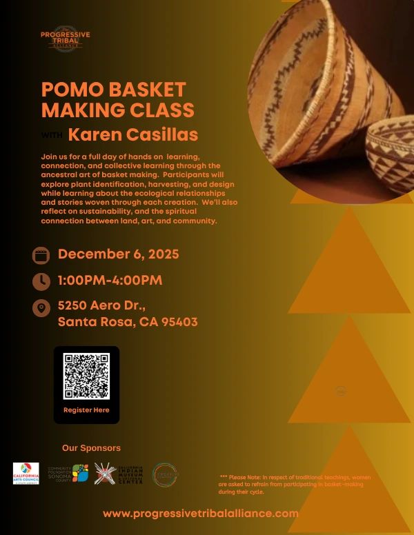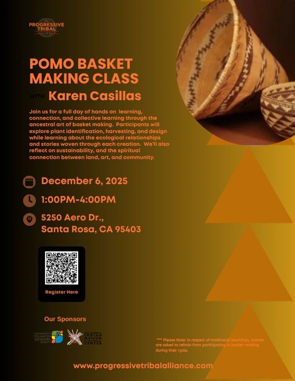 In partnership with Karen Casillas, we are pleased to present our Pomo Basket Making Class. This hands-on class will guide participants through the process of working with willow- from gathering and selecting to aging, drying and basket design.